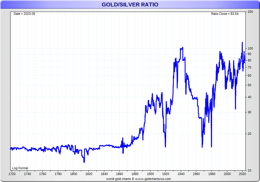 Silver to Gold value around 1500 which is 11 to 1, later 16 to 1, today partly over 100 to 1! |